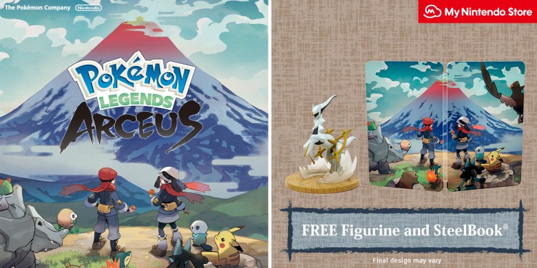 Those that pre-order on My Nintendo Shop will certainly get a complimentary SteelBook ® and also Arceus porcelain figurine! Free present products are restricted and also are purely based on schedule. Currently pre-ordered? Your order will instantly be updated to consist of complimentary products!